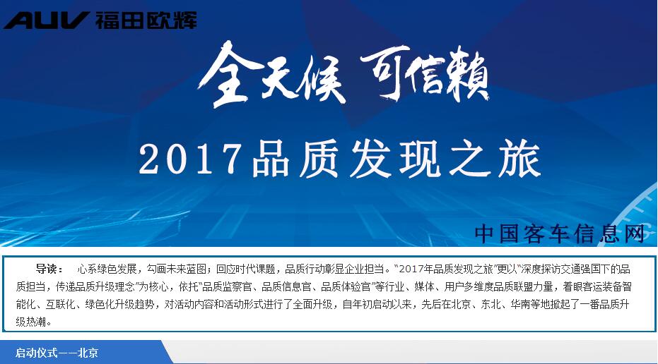 心系綠色發(fā)展,勾畫未來藍(lán)圖;回應(yīng)時(shí)代課題,品質(zhì)行動彰顯企業(yè)擔(dān)當(dāng)?!?017年品質(zhì)發(fā)現(xiàn)之旅”更以“深度探訪交通強(qiáng)國下的品質(zhì)擔(dān)當(dāng),傳遞品質(zhì)升級理念”為核... 更多>>